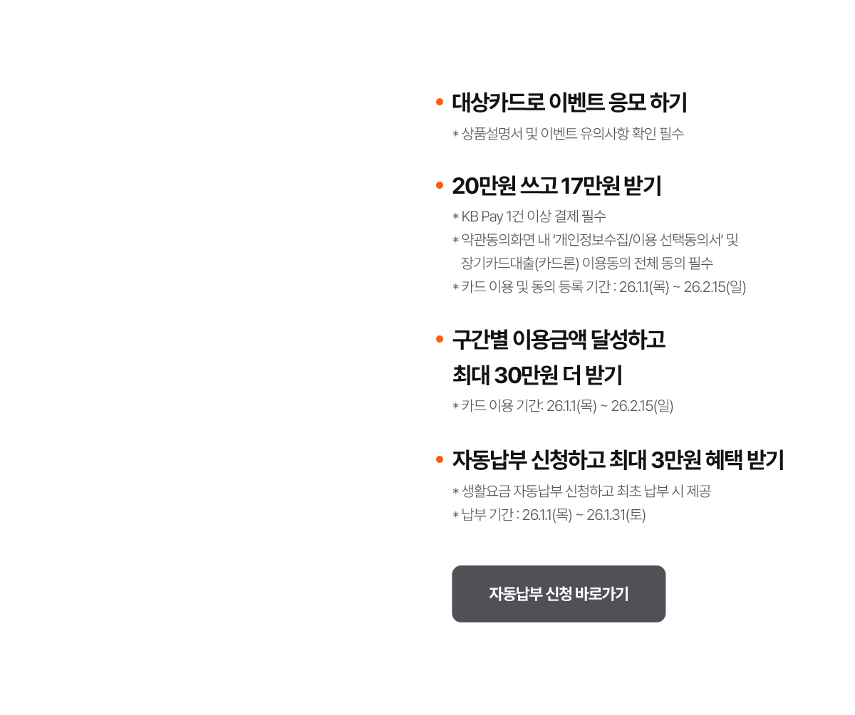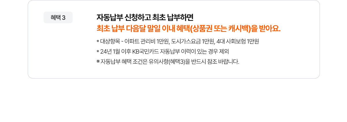 - * 24년 1월 이후 KB국민카드 자동납부 이력이 있는 경우 제외