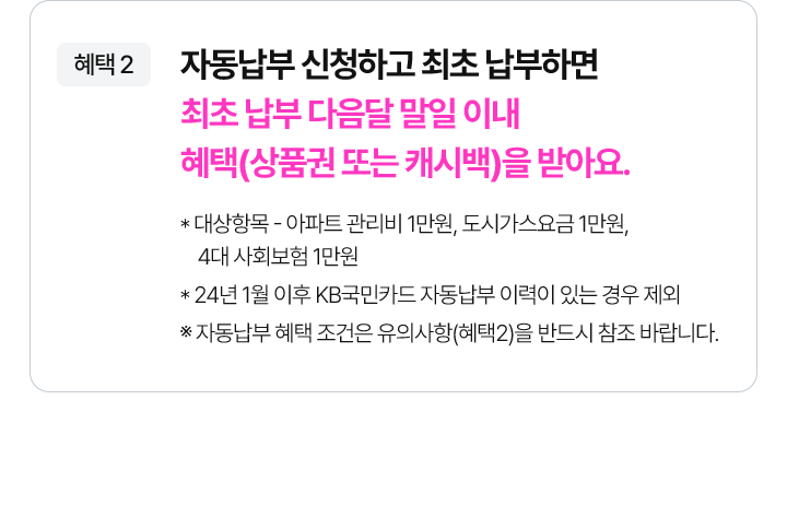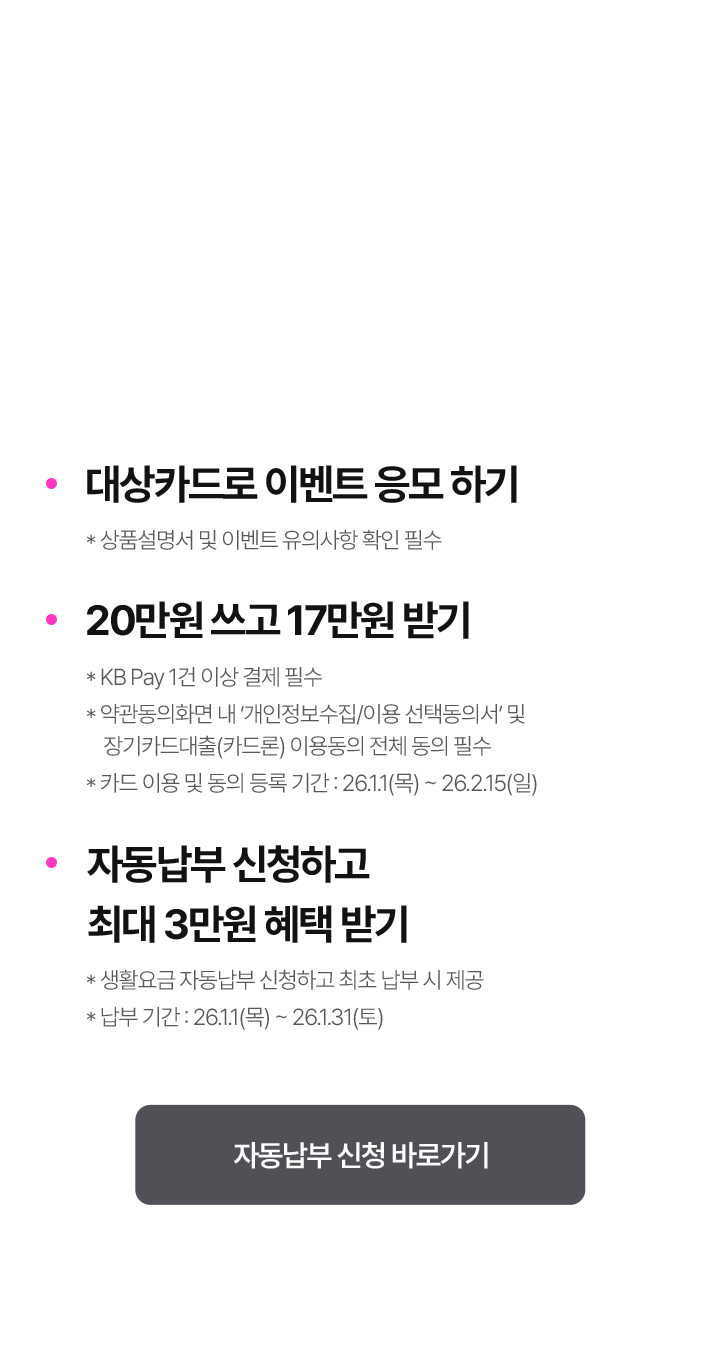 - * 24년 1월 이후 KB국민카드 자동납부 이력이 있는 경우 제외