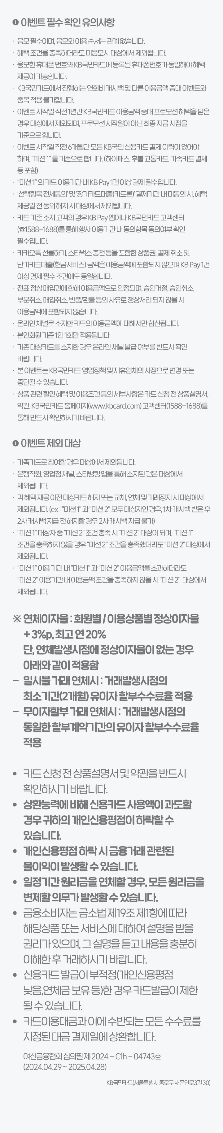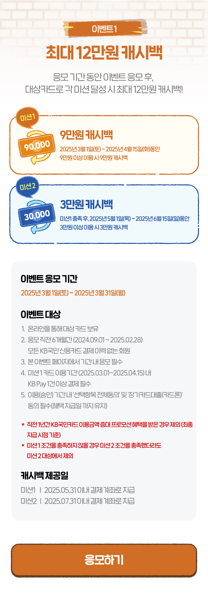 - 2. 응모 직전 6개월간 (2024.09.01 ~ 2025.02.28) 모든 KB국민 신용카드 결제 이력 없는 회원