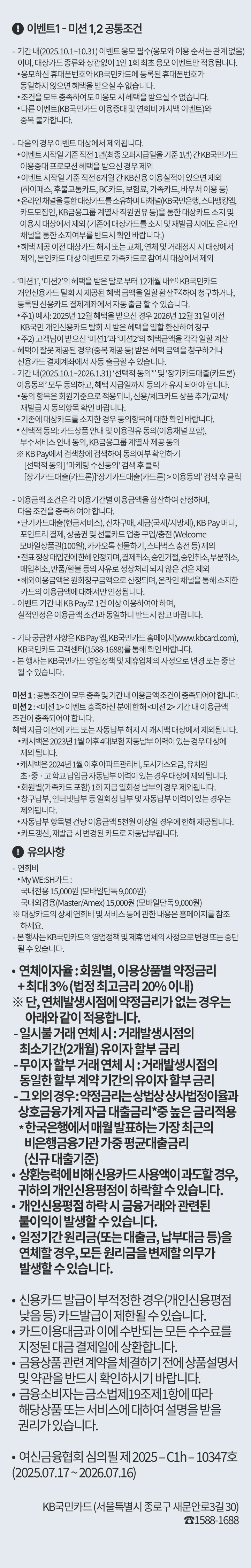 - * 직전 1년간 KB국민카드 이용금액 증대 프로모션 혜택을 받은 경우 제외 (최종 지급 시점 기준)